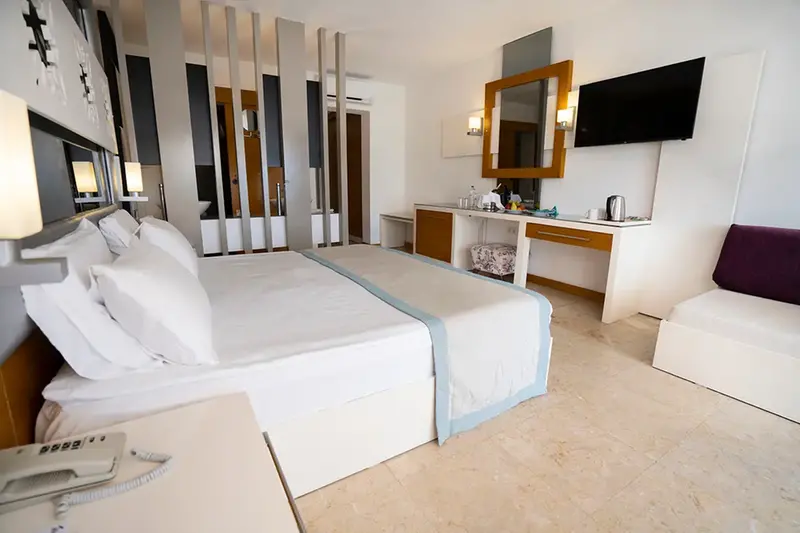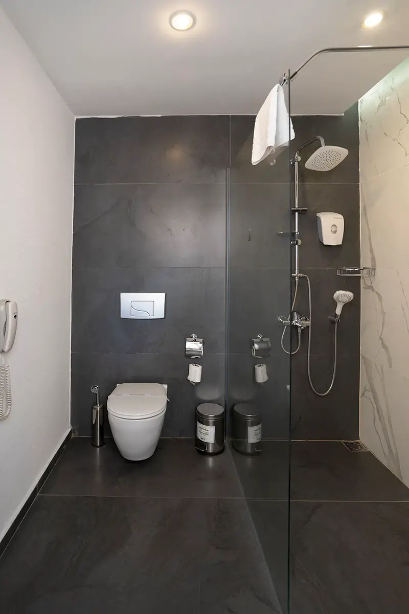 BATHROOM Bathrobes Bidet Free toiletries Hair dryer Private bathroom Shower Slippers Towels BEDROOM Split Air Conditioning Laminate / Marble Flooring Blackout Drapes/Curtains ENTERTAINMENT LCD TV TV Satelite Free WIFI FOOD AND DRINK Room Service (Extra Charge) Tea / Coffee Making Facilities Minibar (Soft Drinks) MORE Room Cleaning (Daily) Bed Linen Change (Every 3 Days) Towels Change (Every 3 Days) Phone (Extra Charge) Laundry & Ironing (Extra Charge) Safe Box